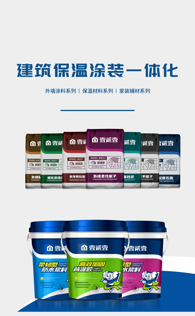 專注于建筑墻面裝飾美化及防護為發展方向,構筑三大核心競爭力,努力把壹貳壹品牌打造成為專業墻面保溫/美護工程涂料新標桿。